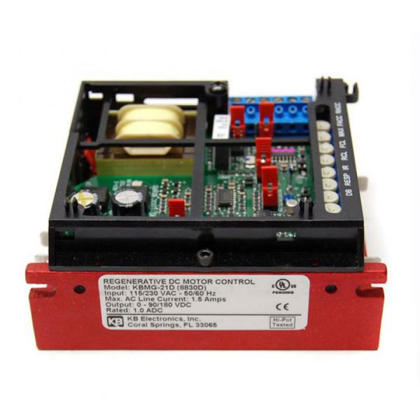 Reliability of the KBMG is further enhanced with the use of a high speed current limit circuit and MOV Transient Protection. LEDs, which can be used for diagnostics, are provided for power on and motor overload. Power connections are made via quick connect terminals and signal input connections are made via a removable terminal block. A 5K ohm potentiometer is included. This drive also contains Auto Inhibit® which provides a smooth, safe start during rapid switching of the AC line.