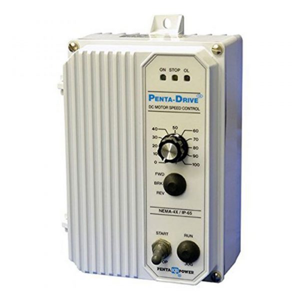 The KBPC Series of DC Drives consist of four models and is rated for 1/100 to 3 horsepower motors. These drives are housed in a NEMA 4X / IP 65 die-cast aluminum washdown/watertight enclosures for indoor or outdoor use. The exclusive Short Circuit and Timed Current Limit (TCL) circuitry prevents motor burnout and demagnetization of PM motors. Features, such as a selectable motor current, eliminates unnecessary calibration the of IR and CL trimpots. Other selectable features are: Input Voltage, Output Voltage, Current Range, Input Signal, Armature or Tachometer Feedback, and Tachometer Voltage. Trimpot adjustments include: MIN, MAX, ACCEL, DECEL, IR, CL and TCL. Standard features include an Armature fuse, Electronic Start-Stop, and diagnostic LED Indicator Array for “power on”, “stop” and “overload.” This drive also contains Auto Inhibit® which provides a smooth, safe start during rapid switching of the AC line.