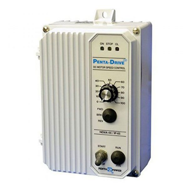 The KBRC-240D is a Full-Wave Regenerative Drive in a NEMA-4X/ IP-65 washdown and watertight enclosure. It is designed to operate 90 and 180 Volt Permanent Magnet and Shunt Wound DC motors in a bidirectional mode. It provides 4-quadrant operation, which allows forward and reverse torque in both speed directions. This allows the control to maintain constant speed with overhauling loads and provides rapid instant reversing and controlled braking. Because of its excellent performance, the control can replace servo drives in many applications.